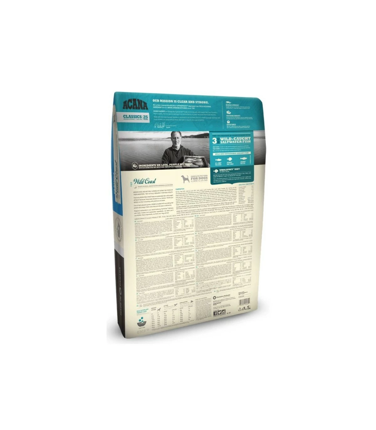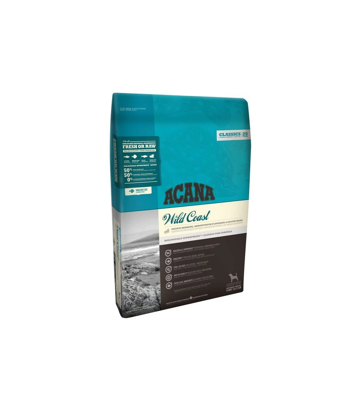 Ricco di nutrienti proteine e acidi grassi omega-3, ACANA Wild Coast contiene pesce pescato in modo sostenibile nelle fredde acque del Pacifico attorno all’Isola di Vancouver Nord e viene consegnato FRESCO e INTERO alle nostre cucine, così da essere ricco di bontà e gusto.