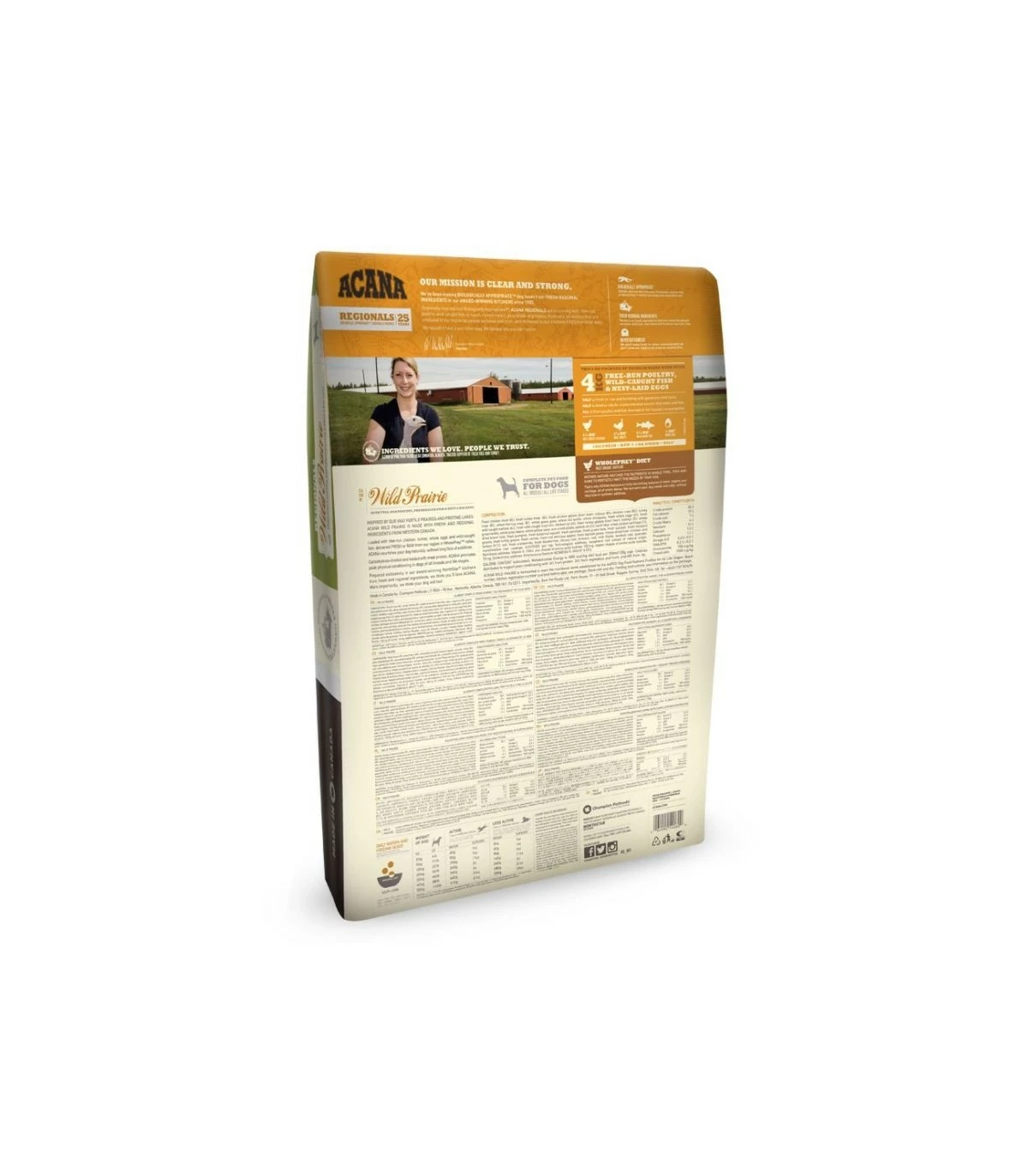 ACANA Wild Prairie è ricco di bontà naturale, tra cui pollo allevato a terra, tacchino, uova intere deposte in nido e pesce pescato in natura nei nostri freddi laghi del nord, ingredienti consegnati freschi nelle proporzioni della preda intera (WholePrey™), ogni giorno.