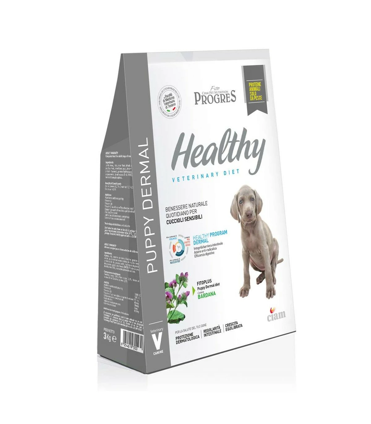 Healthy Puppy Dermal contiene principi nutritivi utili per potenziare la protezione dermatologica, per migliorare la regolarità intestinale e per consentire una crescita equilibrata del cucciolo sensibile.