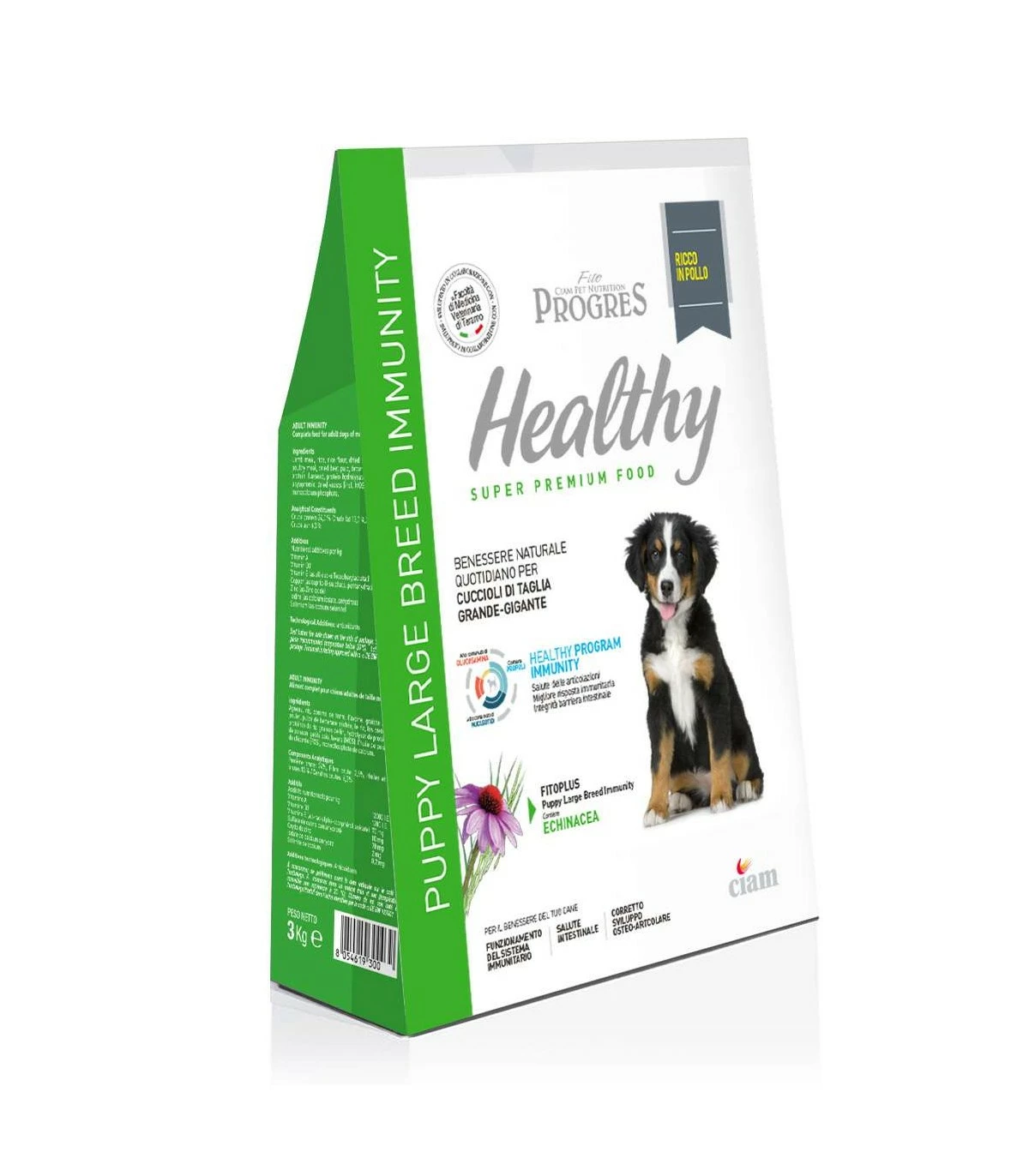 Healthy Puppy Large Breed Immunity contiene principi nutritivi utili per migliorare il normale funzionamento del sistema immunitario, per preservare la salute intestinale e per consentire il