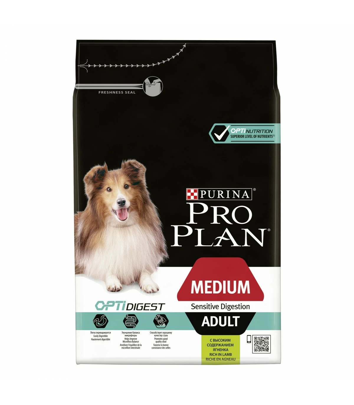 Purina® PRO PLAN® Medium Adult Sensitive Digestion Ricco in Agnello contiene OptiDigest, una combinazione di ingredienti in adeguati livelli per cani adulti di media taglia con digestione sensibile. Se il tuo cane adulto ha una digestione sensibile, prova questo delizioso alimento per un aiuto costante alla sua salute.