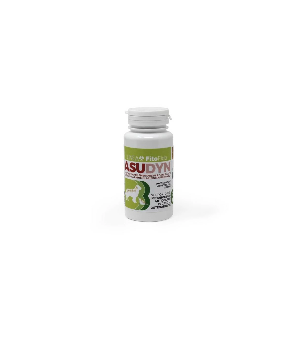 ASUDYN mangime complementare destinato a particolari fini nutrizionali in compresse divisibili da 1200 mg, è particolarmente indicato come supporto del metabolismo articolare in caso di osteoartrite nel cane e nel gatto. La formulazione di ASUDYN risulta di facile somministrazione ed elevata appetibilità. ASUDYN è particolarmente indicato anche in soggetti anziani o in soggetti sportivi, sottoposti ad elevato sforzo fisico.